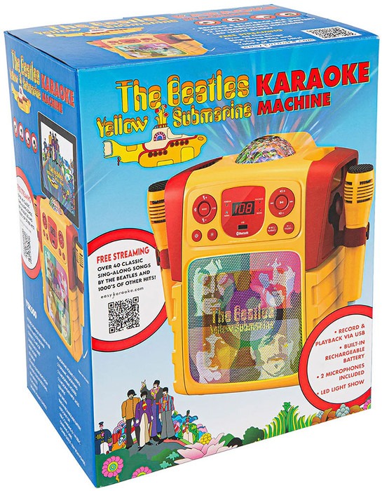 Dieses farbenfrohe Karaoke-System im Stil von The Beatles bringt sofort Partystimmung ins Wohnzimmer. Inspiriert vom Kultfilm Yellow Submarine sorgen bunte LED-Lichteffekte und eine integrierte Disco-Kugel für echtes Bühnenfeeling.