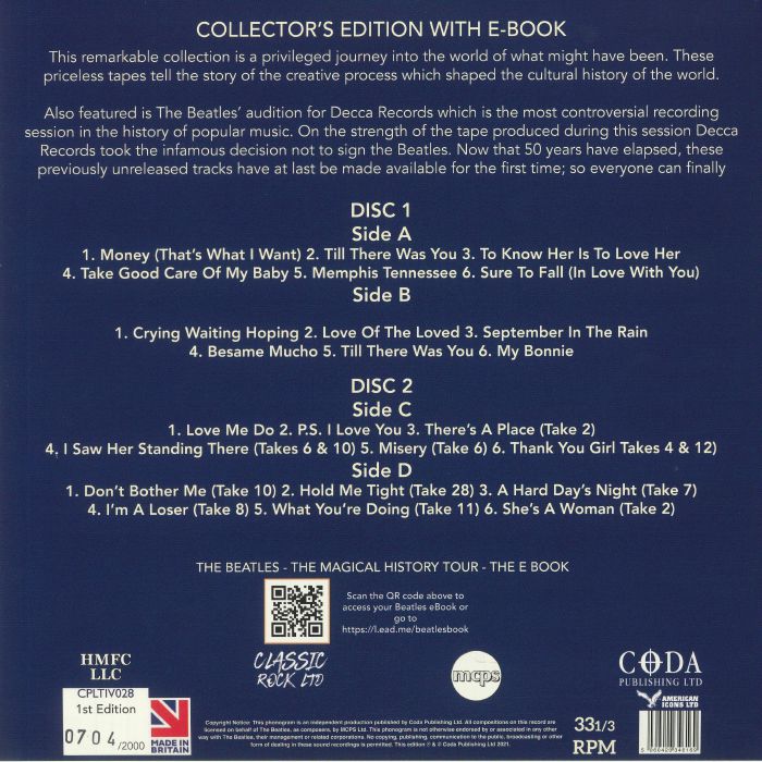 LP 1, Seite 1: Track 1: Money (That’s What I Want) / Track 2: Till There Was You / Track 3: To Know Her Is To Love Her / Track 4: Take Good Care Of My Baby / Track 5: Memphis Tennessee / Track 6: Sure To Fall (In Love With You).
